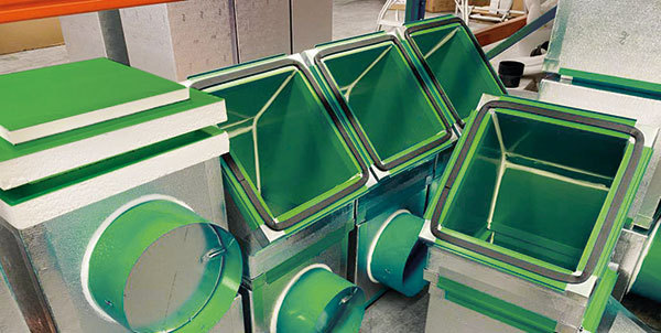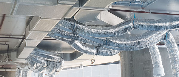 Flexible duct made of reinforced aluminum foil treated with ALP micro-virus technology compound.